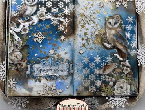 Zum schluss habe ich noch etwas Mumienbinde und einen spruch aufgeklebt. Um aber noch ein paar alzente zu setzten habe ich noch mit Glossy Acsents und mit schimmer gearbeitet 🙂