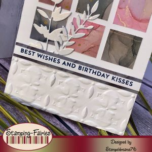 Hierfür habe ich mir meine Elemente auf der Karte aufgelegt und den Bereich eingezeichnet, bis wohin meine Prägung gehen soll. Bis zur Markierung habe ich mir den Embossingfolder positioniert und durch meine Big Shot gekurbelt. Somit habe ich nur den schmalen Streifen geprägt.