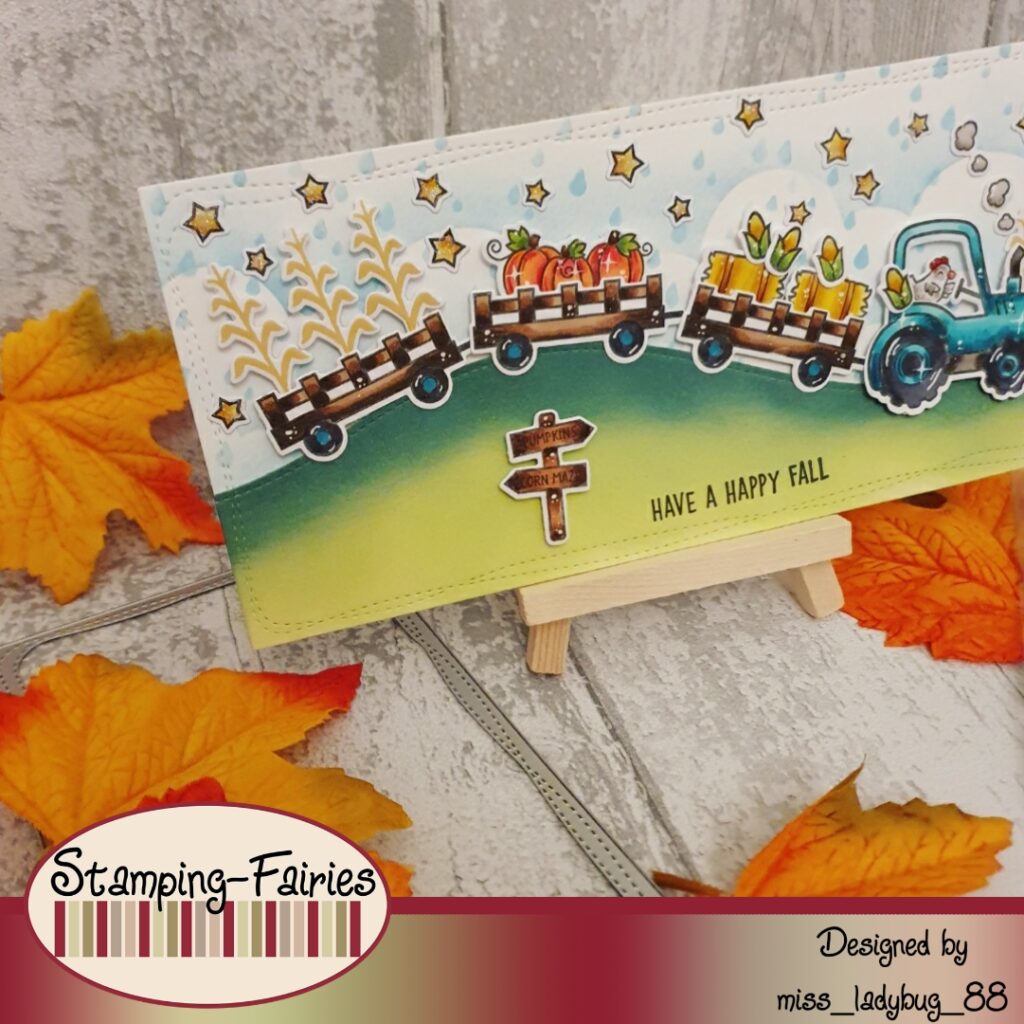 Als alles aufgeklebt war, sah mir das irgendwie noch zu leer aus. Also klebte ich noch Sterne in den Himmel, die ich zuvor aus dem Set „Betty for you“ gemopst hatte.( Übrigens ist das Set auch von der neuen Release). Mein Spruch war aber aus dem Set „Hay there….. . Da es ja sehr herbstlich angehaucht ist, dachte ich der Spruch passt prima. Have a happy Fall🥰