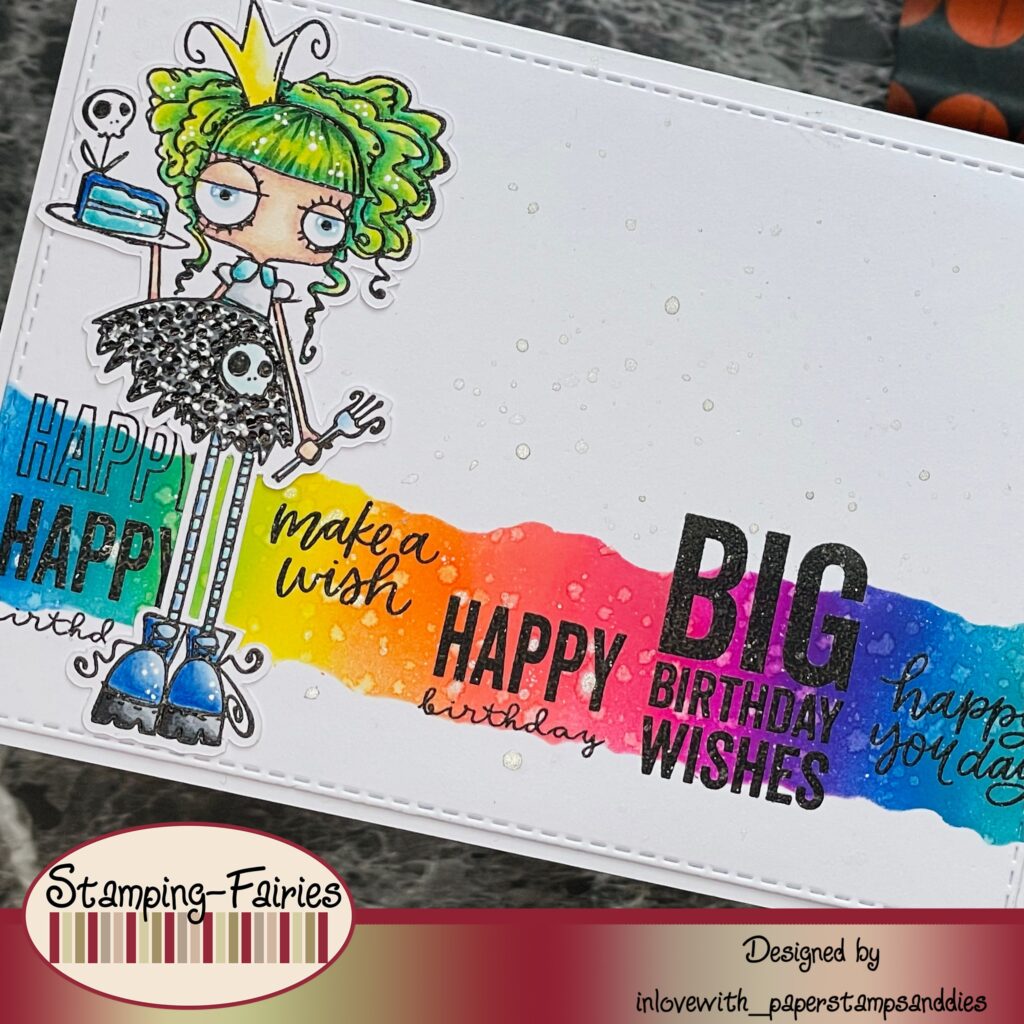 Nadine liebt ja die Oddballs, zumindest sind diese oft auf ihren Projekten zu finden, daher habe ich hier natürlich auch einen Oddball-Stempel verwendet und zwar die „Birthday Queen“.