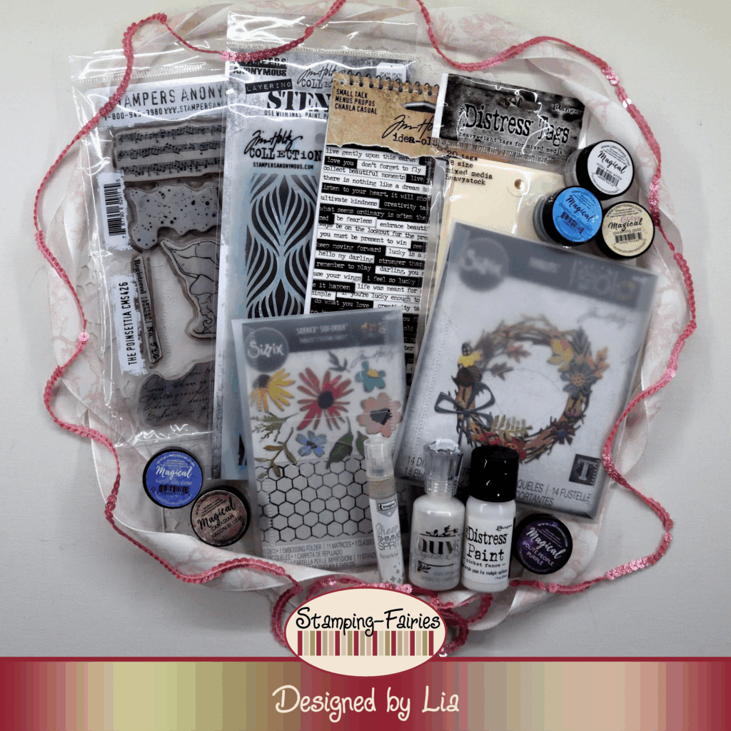 Hallo zusammen! Willkommen zurück zu einem weiteren Mixed-Media Projekt. Heute zeige ich euch ein zauberhaft buntes Projekt! Ich wollte ein farbenfrohes und glänzendes Ergebnis und wusste genau, wie ich es erreichen konnte. Beginnen wir mit den Materialien, die ich verwendet habe: