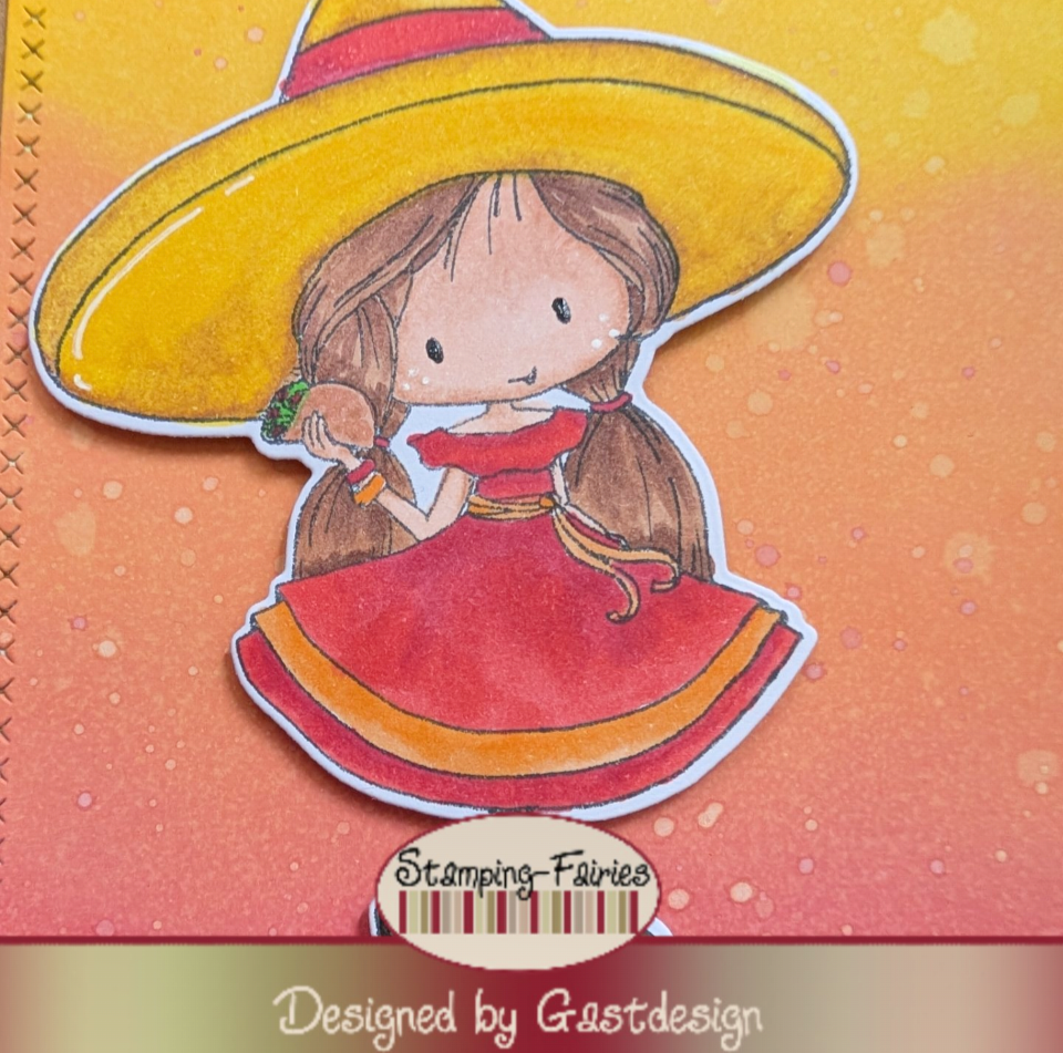 Zunächst habe ich die Sweet Senorita mit dem Memento Tuxedo Black gestempelt und anschließend mit meinen Copic Makern coloriert. Im Anschluss habe ich mein Motiv mit der passenden Outlinestanze und meiner Sizzix Bigshot ausgestanzt.