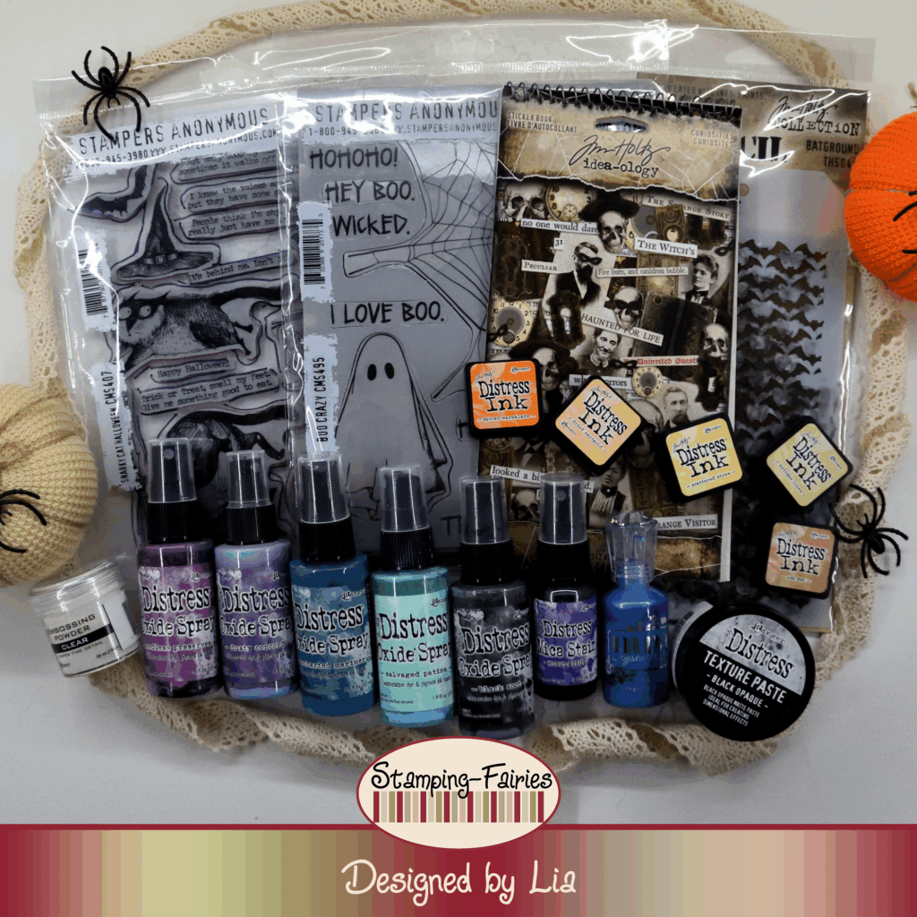Hallo zusammen! Willkommen zurück zu einem weiteren Mixed-Media Projekt. Der Oktober steht vor der Tür. Und Oktober bedeutet Halloween! Für heute habe ich ein süßes Halloween Projekt vorbereitet. Beginnen wir mit den Materialien, die ich verwendet habe: