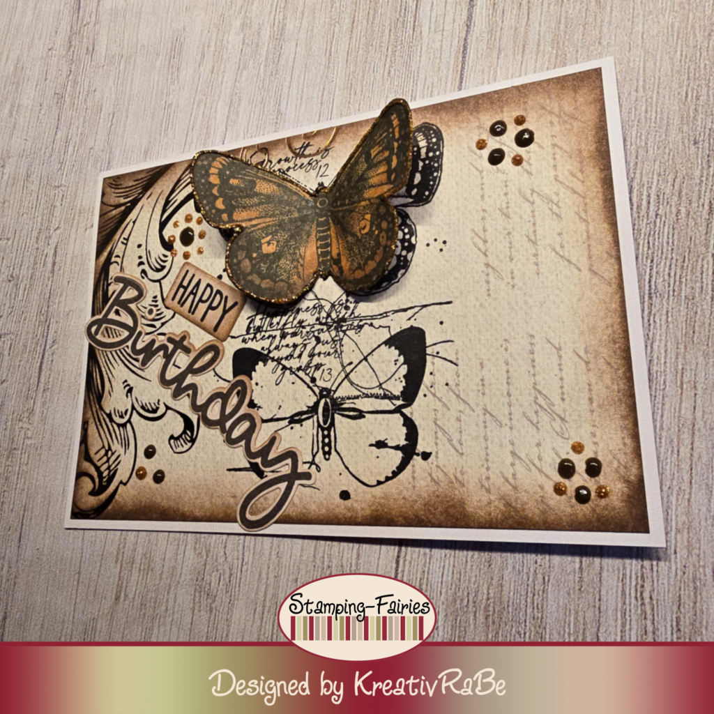 Wir fangen an mit einer sehr „einfach farbigen“ Karte. In Braun gehalten mit ein bisschen Glitzer.