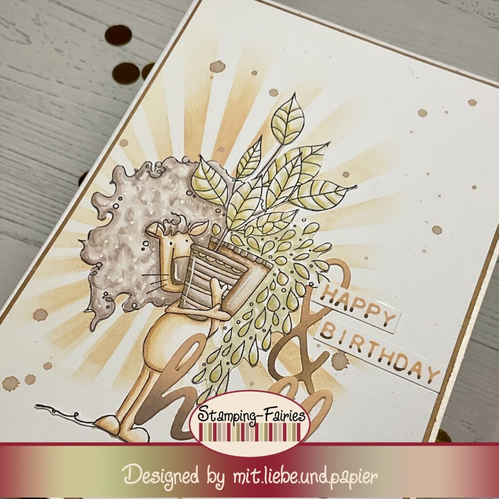 🤎🤎🤎 Schon wieder sind zwei Wochen vergangen und ich dachte es wäre mal wieder Zeit für eine Geburtstagskarte. In zarten Farben kommt King Lion daher und bringt zur Feier des Tages Blumen mit. Ich wäre jetzt auch bereit eine Geschichte über King Lion zu erzählen 😊 aber wir sind wegen was anderem hier, drum folgt geschwind die Materialliste 😂