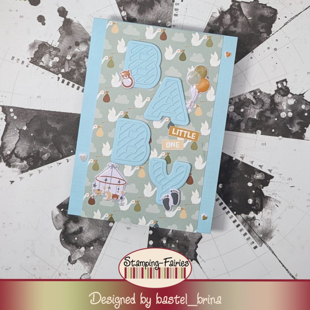 Dann habe ich noch „Little one“ aus einem Bogen des Designpapiers geschnitten und auch auf die Karte geklebt. Und voila, da war die Karte schon fertig.